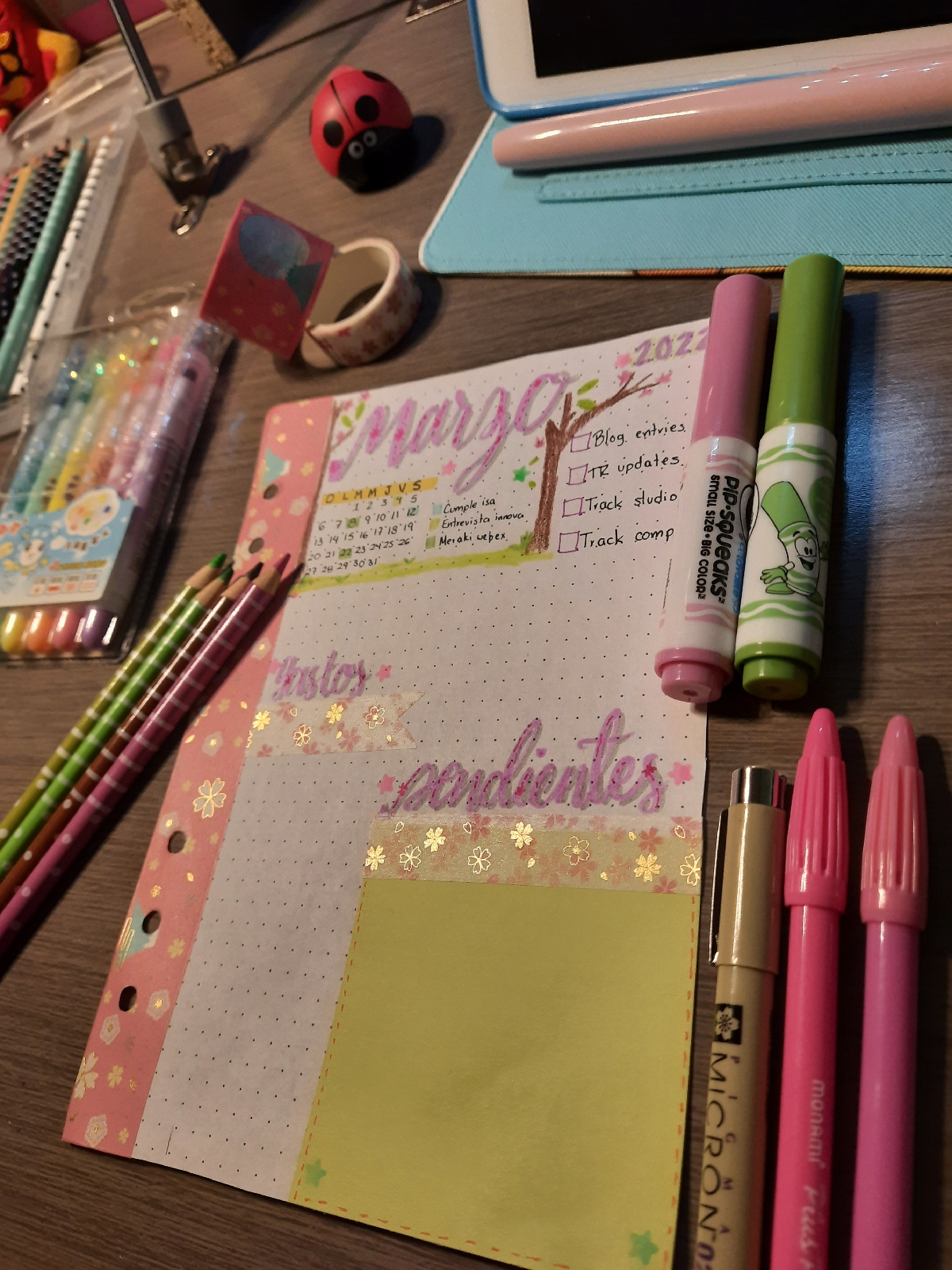 y bueno eso amerita tener varios washi tapes, plumas, plumones, papeles de colores etc. Lo cual me ayuda no solo a esto sino a mis apuntes.